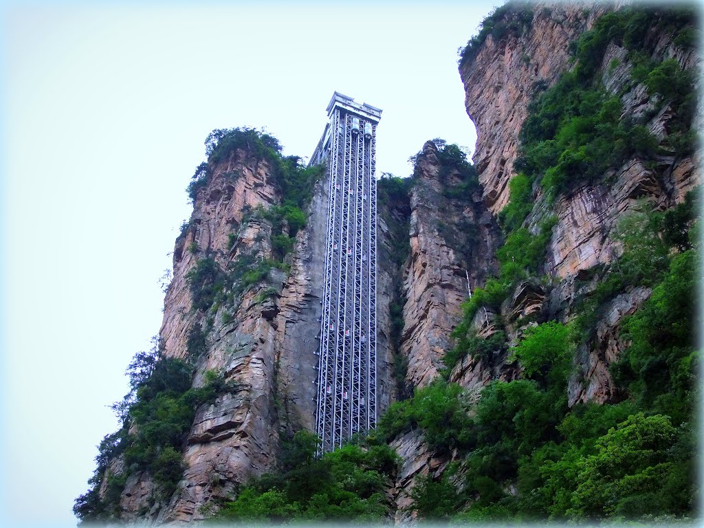Лифт Байлонг (что в переводе означает лифт ста драконов) в провинции Улинъюань построили за 3 года на отвесной 330-метровой скале. Лифт был запущен в эксплуатацию в 2002 году. Теперь туристы и местные жители Чжанцзяцзе могут наслаждаться пейзажами через стекло лифта подымаясь на вершину скалы.