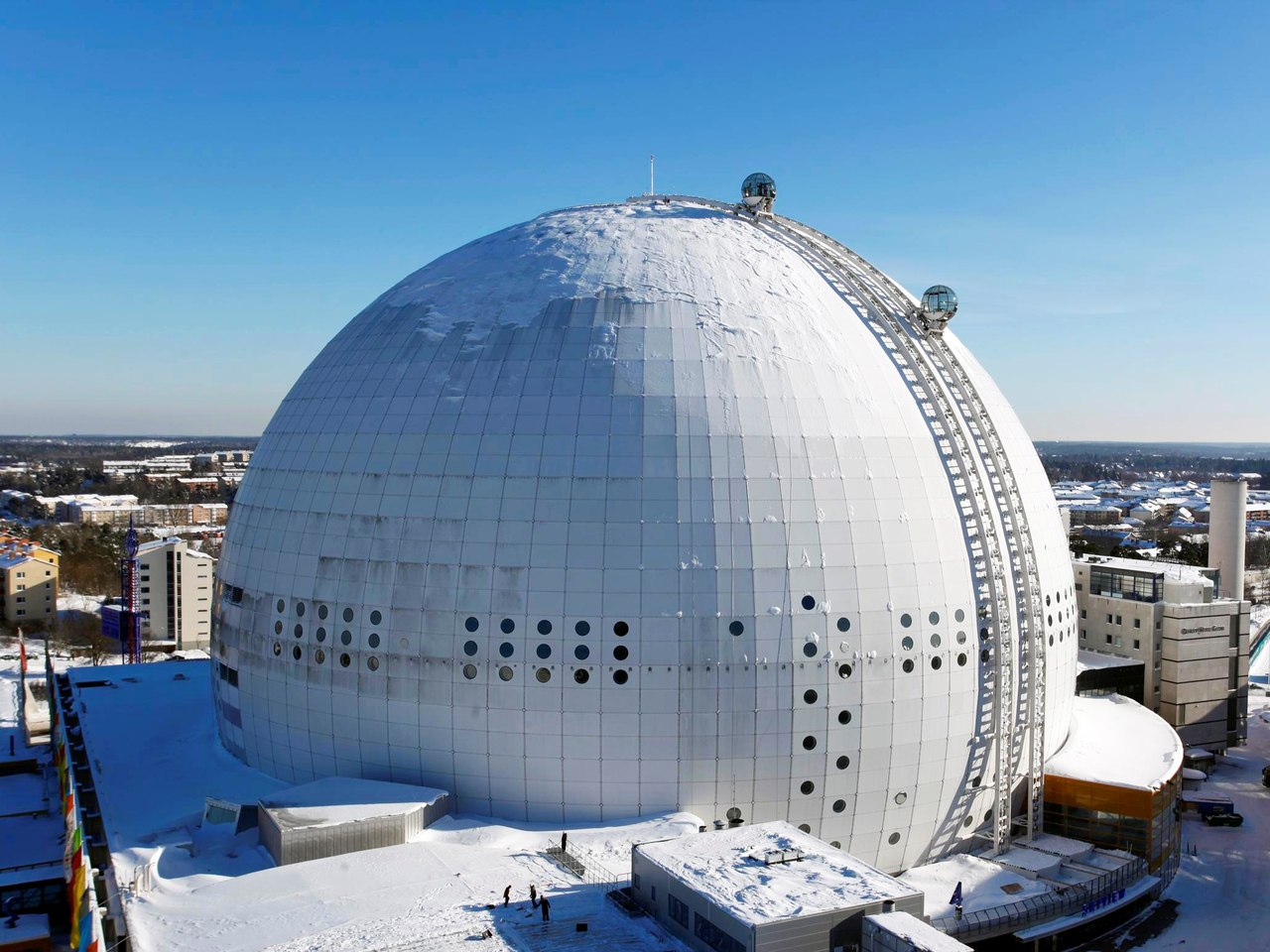 Две круглые стеклянные гондолы раз в час скользят по куполу самой крупной сферической обсерватории в мире - Ericsson поднимая на высоту 130 метров над уровнем моря. Здание обсерватории расположено на окраине Стокгольма откуда открывается идеальный вид на звездное небо.